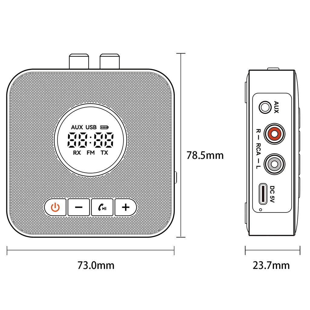 FM-Frequenzgangbereich: FM 76–108 MHz einstellbar (FM-Übertragung kann sowohl im RX- als auch im TX-Modus erfolgen)