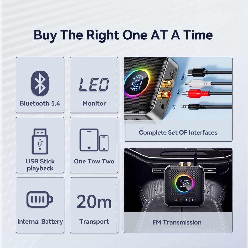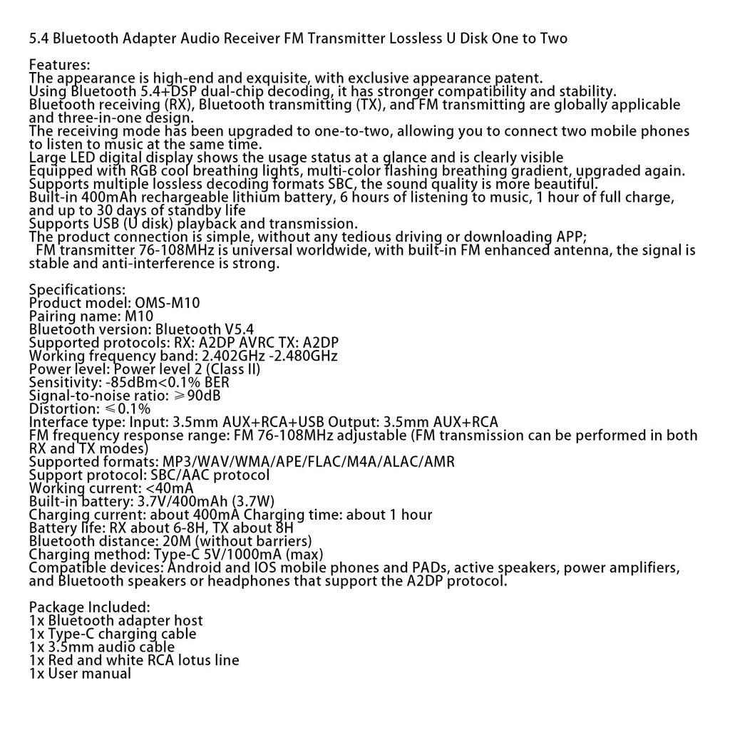 5,4 Bluetooth Adapter Audio Empfänger FM Transmitter Verlustfreie U Disk Eins zu Zwei