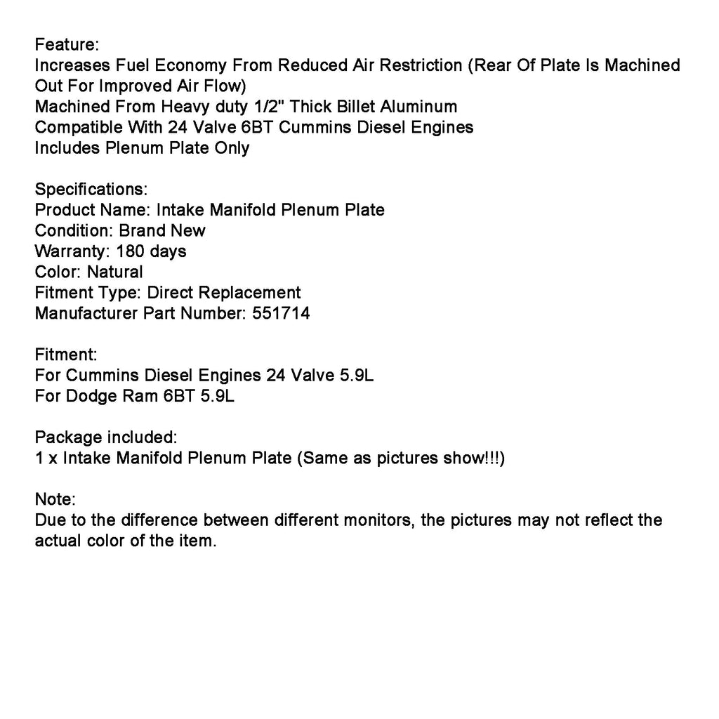 5.9L Ansaugkrümmer Plenum Platte 24V 551714 Fit Dodge Ram Cummins 6BT Diesel