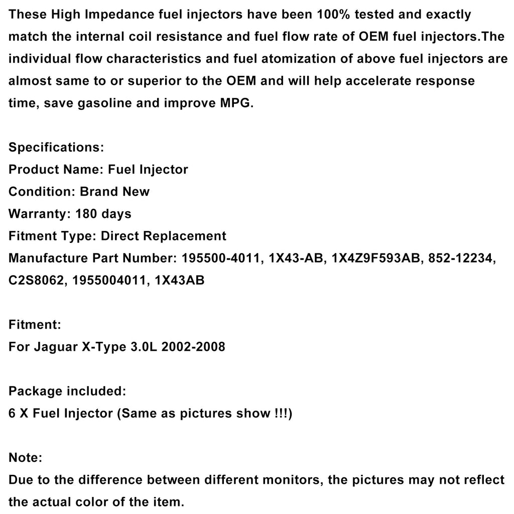 6PCS Kraftstoff Injektor 1X43-AB Fit Jaguar X-Typ 3,0 L 2002-2008 V6 2,5 L 1955004011