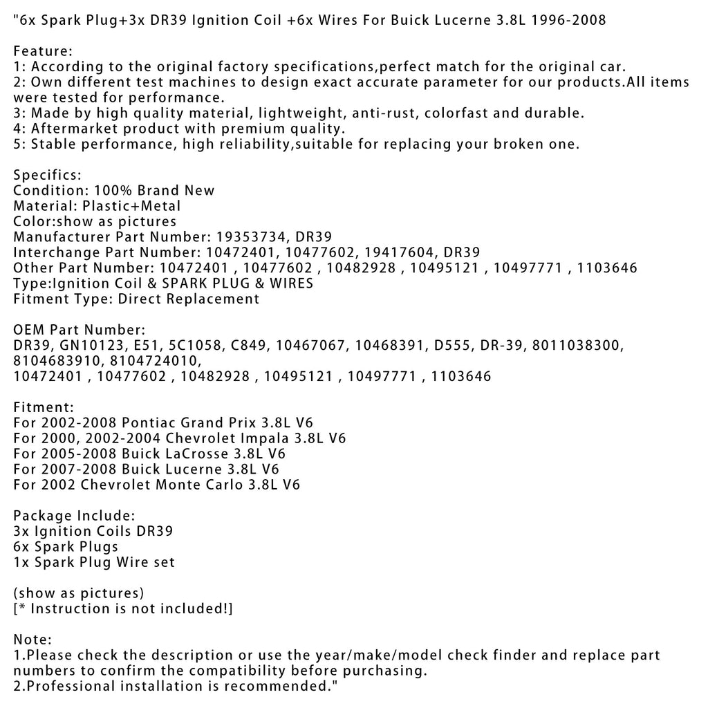 6x Zündkerze + 3x DR39 Zündspule + 6x Drähte Fit Für Buick Lucerne 3,8 L 1996-2008
