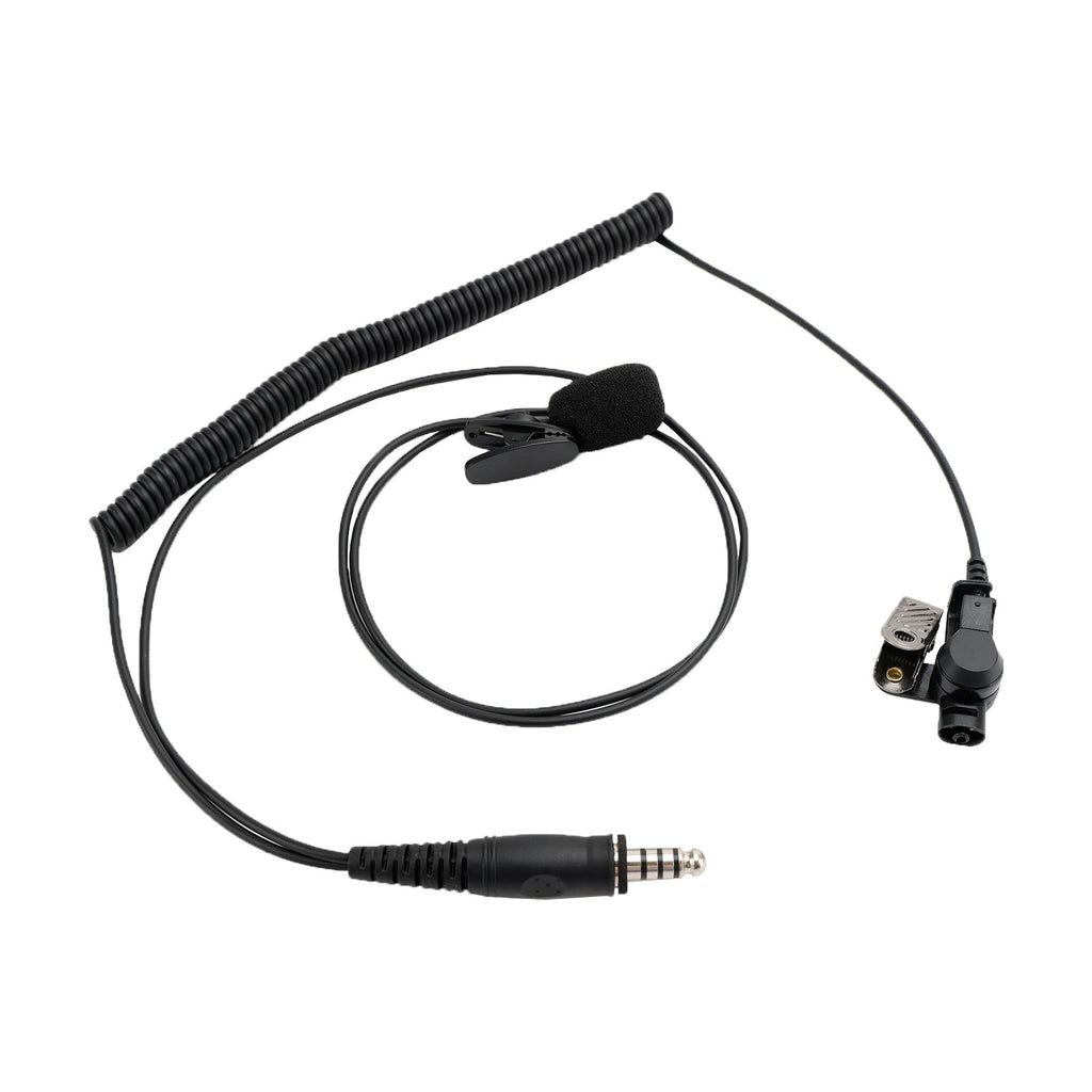 Es kann mit einem PTT-Kabel (Push-to-Talk) mit 7,1-mm-Buchse verwendet werden. Ein Ende des PTT-Kabels ist ein 7,1-Buchsenstecker und das andere Ende ist ein Steckertyp, der verschiedene Intercom-Stecker haben kann.