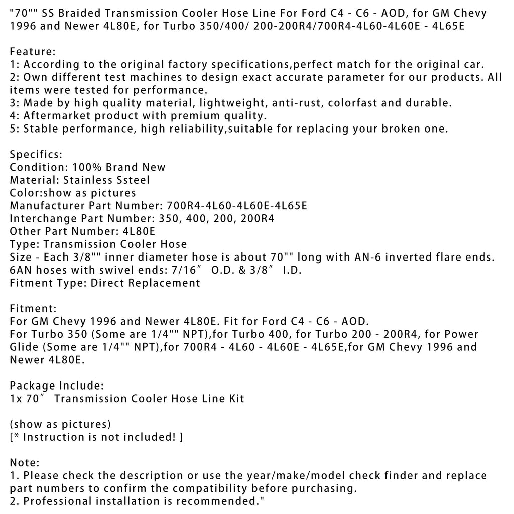 70"" SS geflochtene Getriebekühlerschlauchleitung für Ford C4 - C6 - AOD, für GM Chevy 1996 und neuer 4L80E, für Turbo 350/400/ 200-200R4/700R4-4L60-4L60E - 4L65E