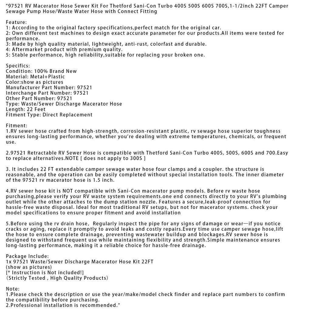 97521 RV-Zerkleinerer-Schlauch-Abwasser-Kit für Thetford Sani-Con Turbo 400S 500S 600S 700S, 1-1/2 Zoll 22 Fuß Camper-Abwasserpumpenschlauch/Abwasserschlauch mit Anschlussstück