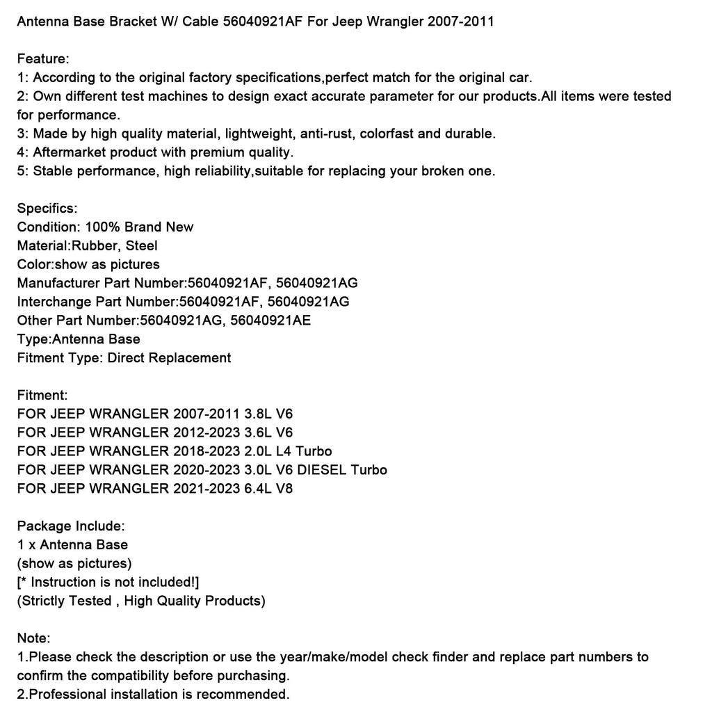 Antennenfußhalterung mit Kabel 56040921AF für Jeep Wrangler 2007-2011