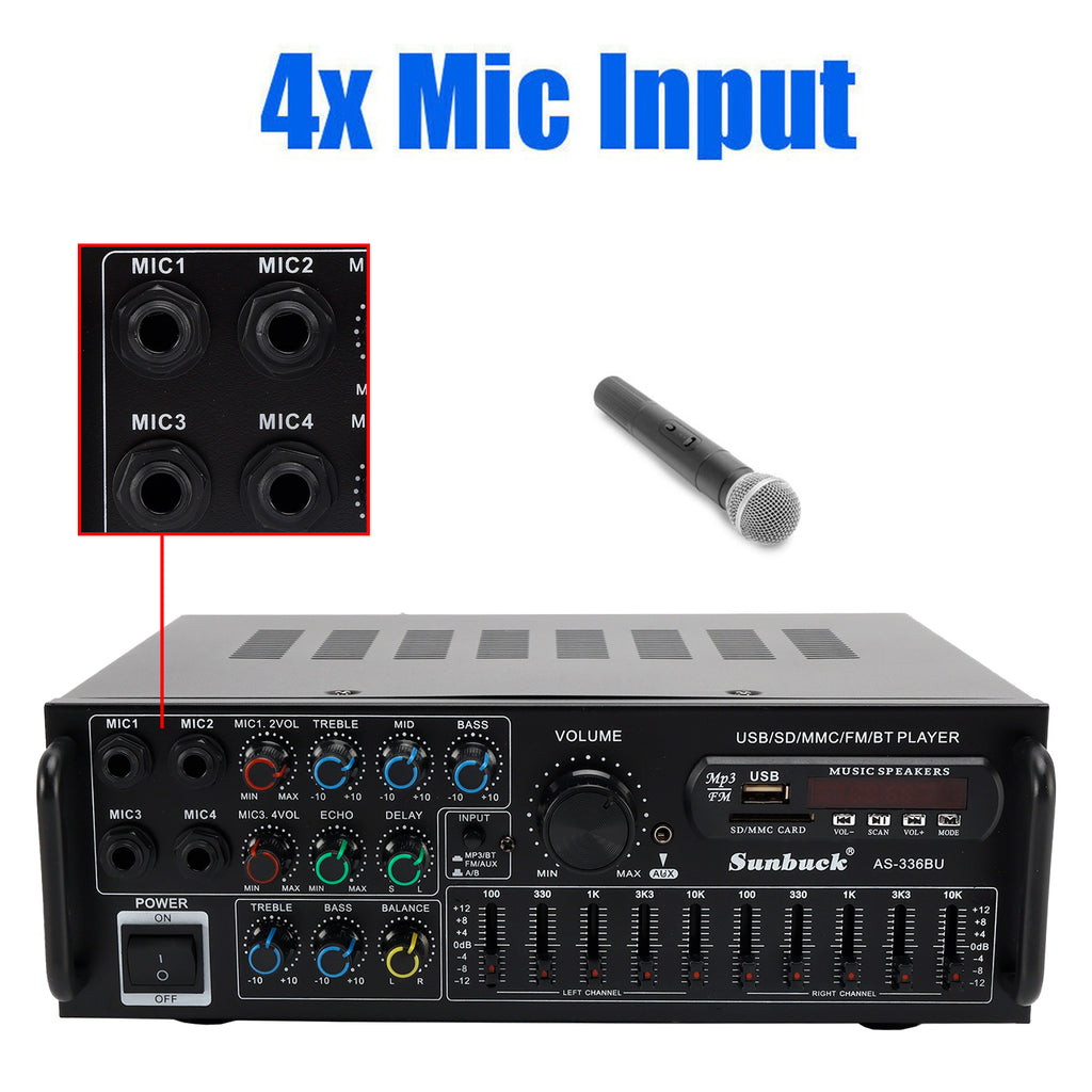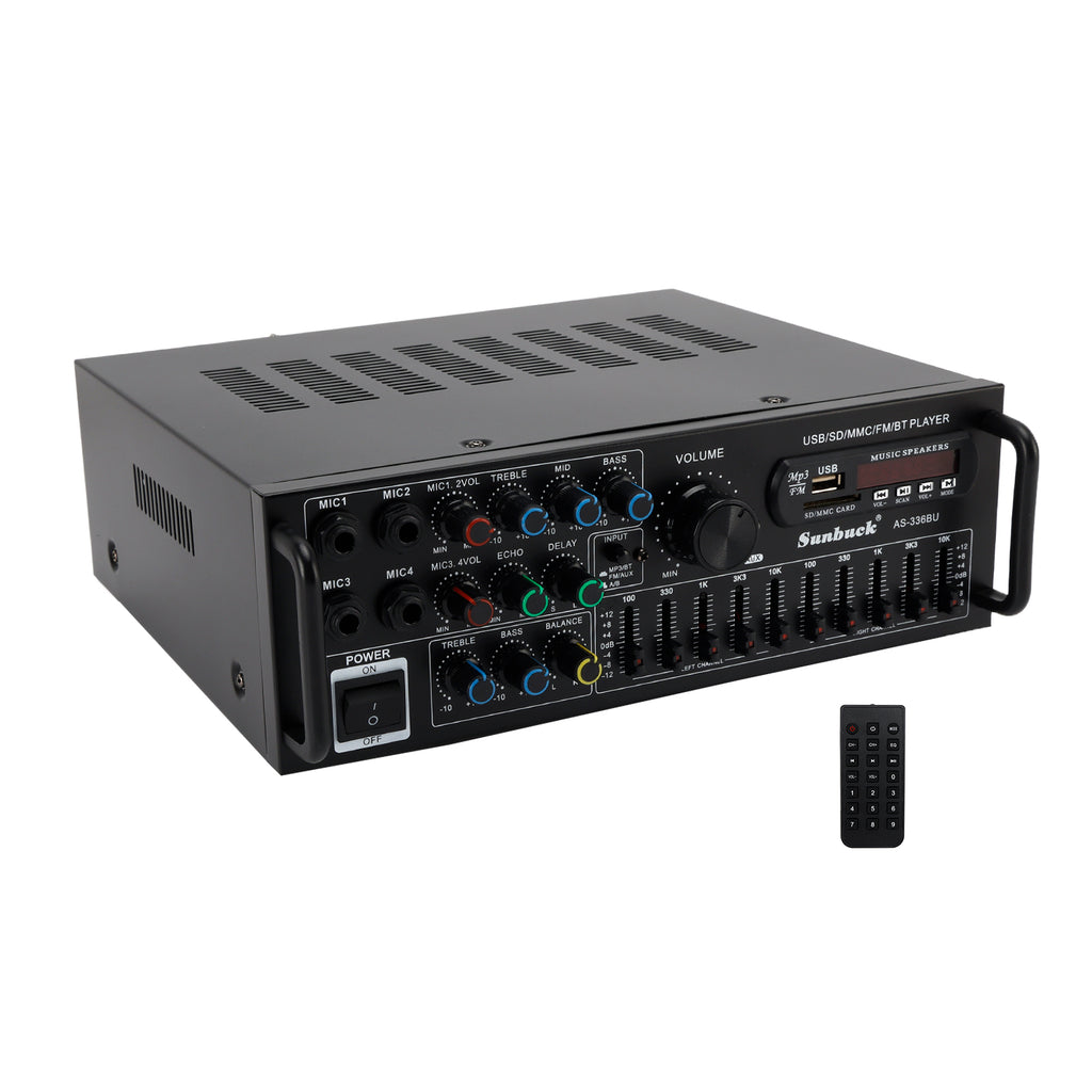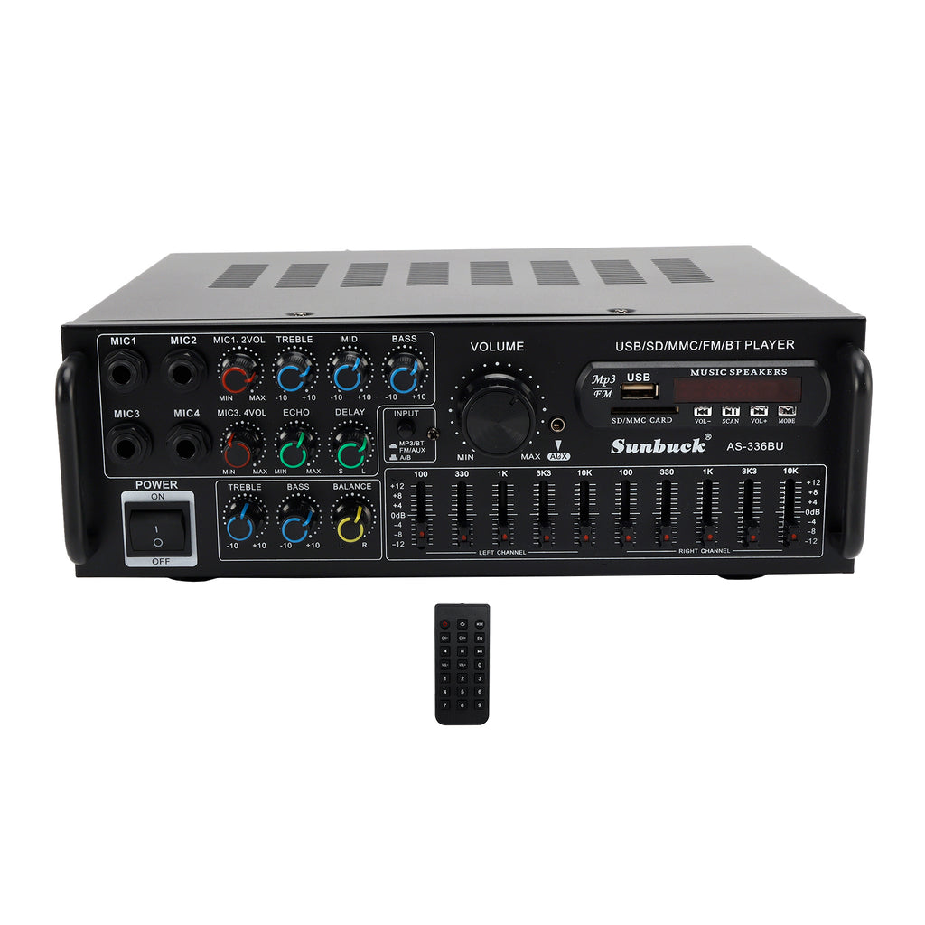 2000W Peak Stereo HiFi -Stromverstärker Bluetooth 5.0 Karaoke FM USB EQ Mixer Sunbuck mit Fernbedienung für das Autohaus nach Hause