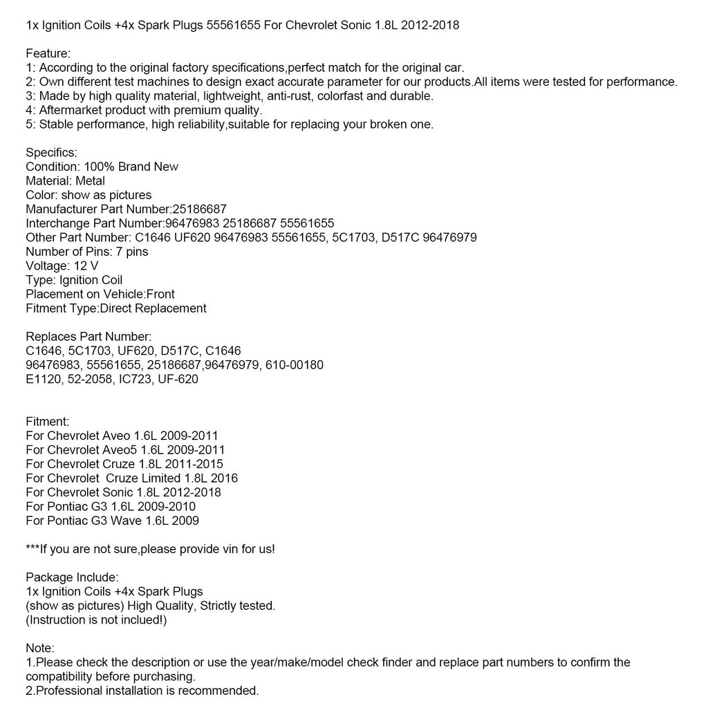 1x Zündspulen + 4x Zündkerzen 55561655 Passend für Chevrolet Sonic 1.8L 2012-2018