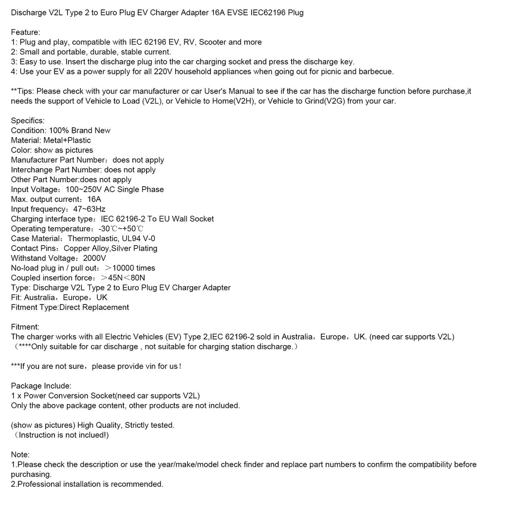 Typ: Entladung V2L Typ 2 zu Euro Stecker EV Ladegerät Adapter