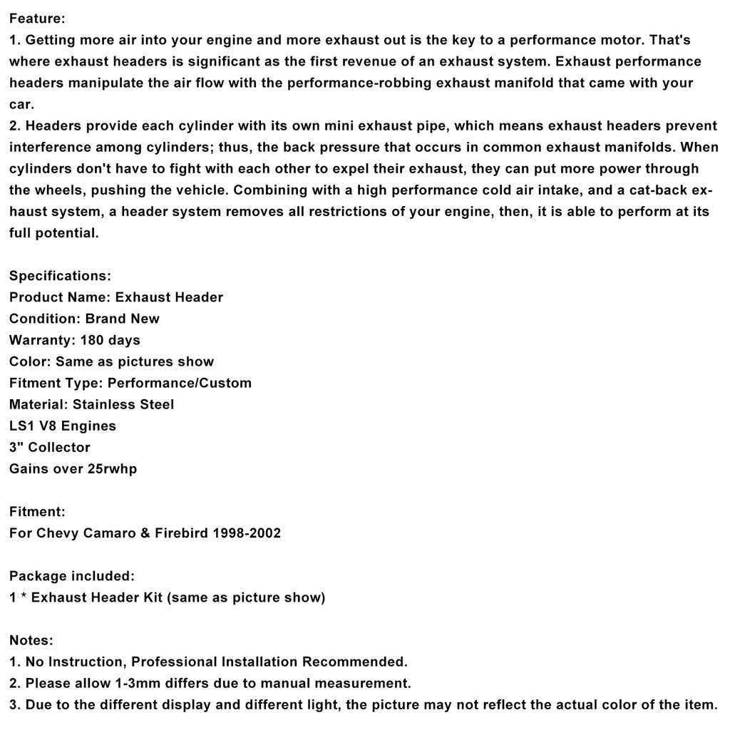 Auspuffkrümmer Header Fit Chevy LS1 Camaro Race Version F-Body 1-7/8