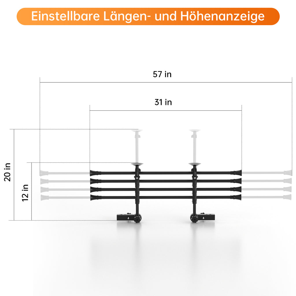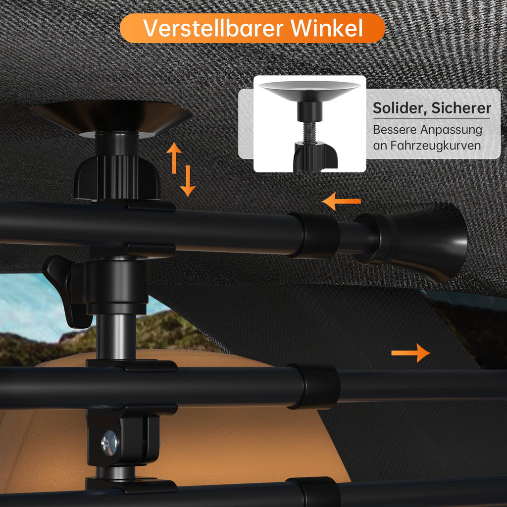 Die Installation erfolgt schnell und ohne Werkzeug, dank des cleveren Designs, das eine einfache Befestigung an den Kopfstützen ermöglicht. Dies sorgt nicht nur für eine stabile Position, sondern auch für eine flexible Anpassung an Ihre Bedürfnisse. Bitte beachten Sie, dass die Kopfstützenhalterungen nur für einen Strebenabstand von 12,3 cm bis 15,6 cm geeignet sind.
