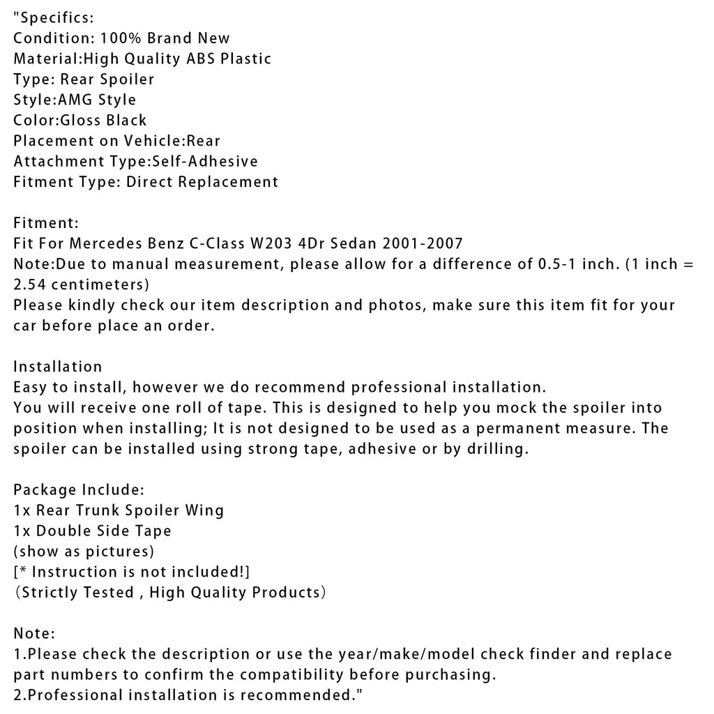 Gloss Black Rear Spoiler For Mercedes-Benz C-Class W203 01-07 Sedan AMG Style