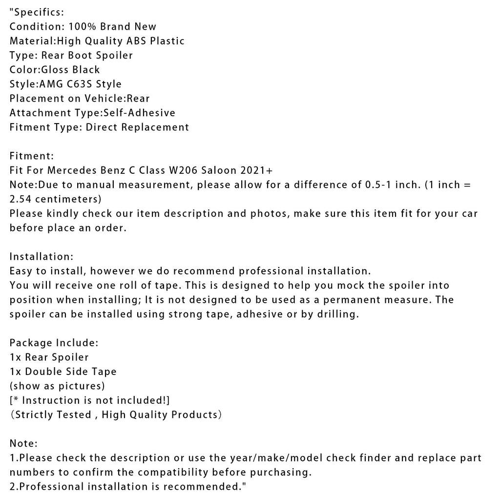 Gloss Black Rear Spoiler For Mercedes-Benz C-Class W206 AMG C63 S Style 2021+