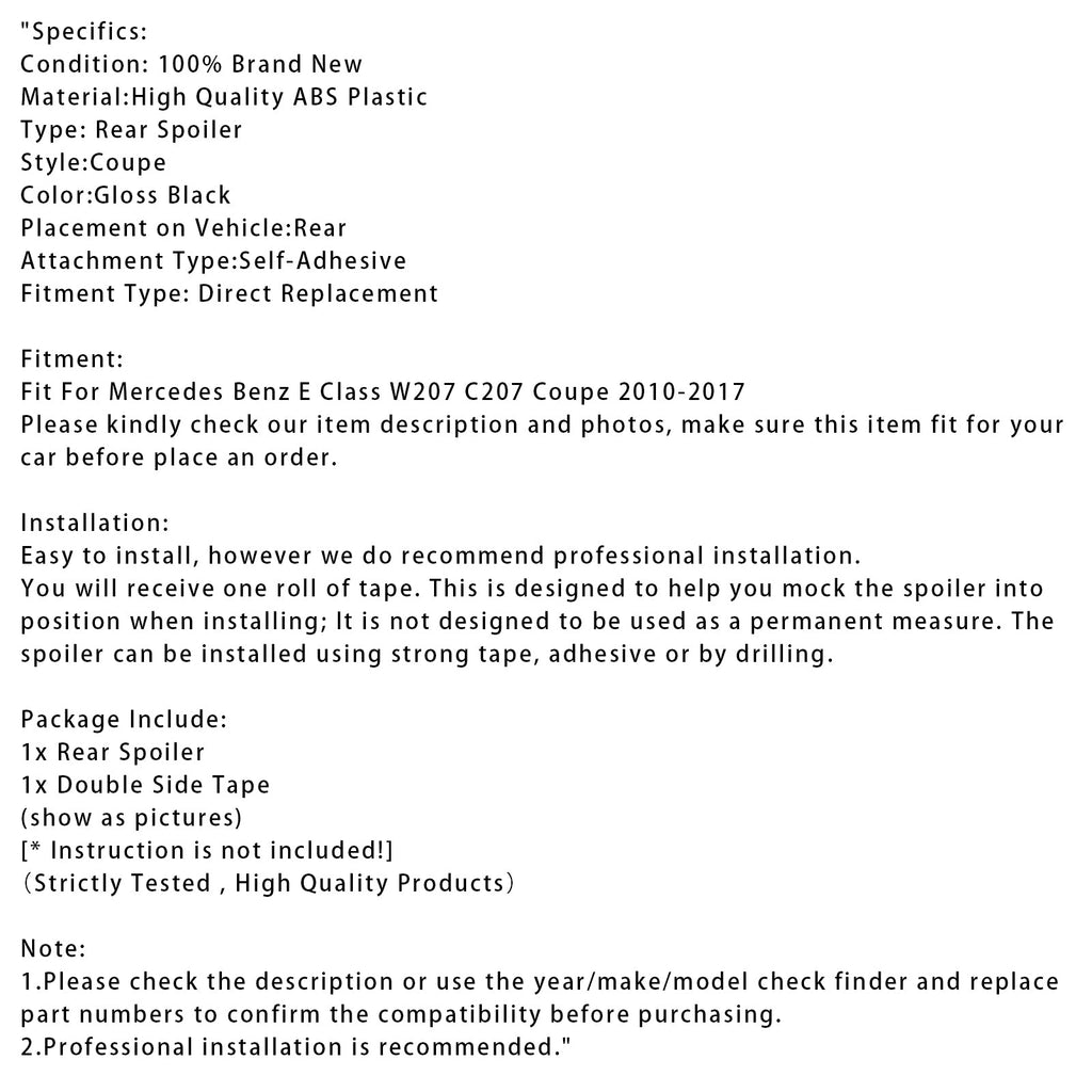 Gloss Black Rear Spoiler For Mercedes-Benz E-Class W207 2010-2017 Coupe