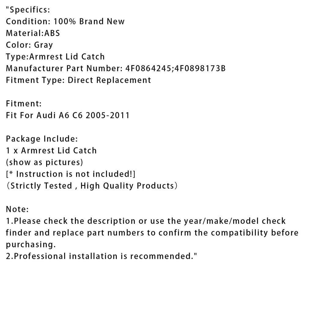 Grau Konsole Center Armlehne Deckel Latch Für Audi A6 C6 2005-2011 4F0864245