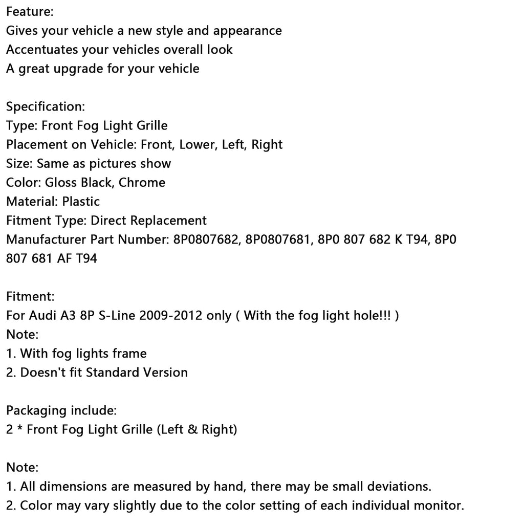 Nur für Audi A3 8P S-Line 2009–2012 (mit Loch für Nebelscheinwerfer!!!)