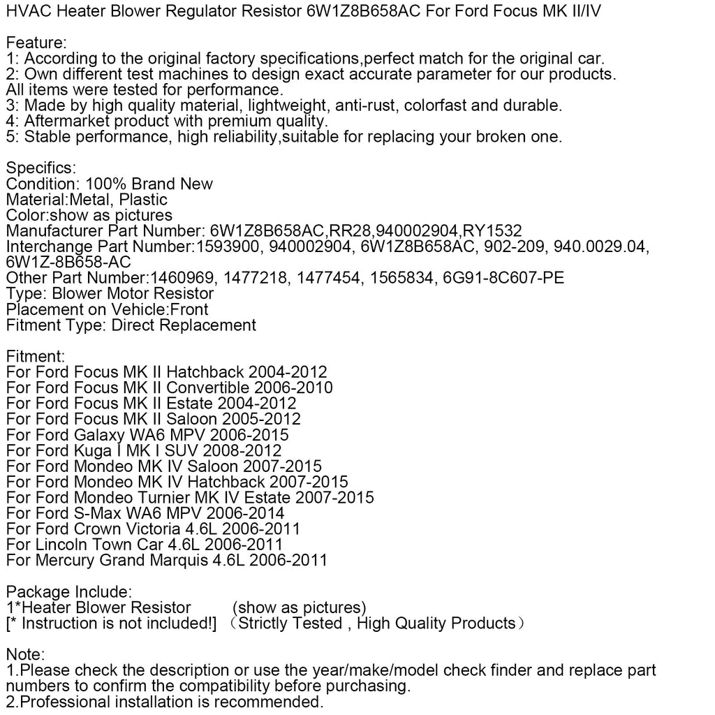 Heizungsgebläsereglerwiderstand 6W1Z8B658AC für Ford Focus MK II/IV