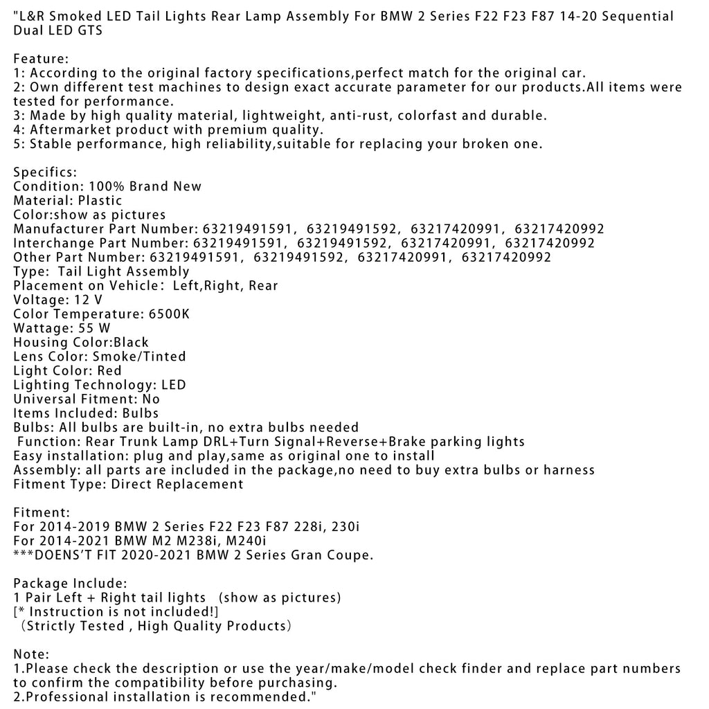 L&R Geräucherte LED-Rückleuchten Hinten Lampe Montage Für BMW 2 Serie F22 F23 F87 14-20 Sequentielle Dual LED GTS
