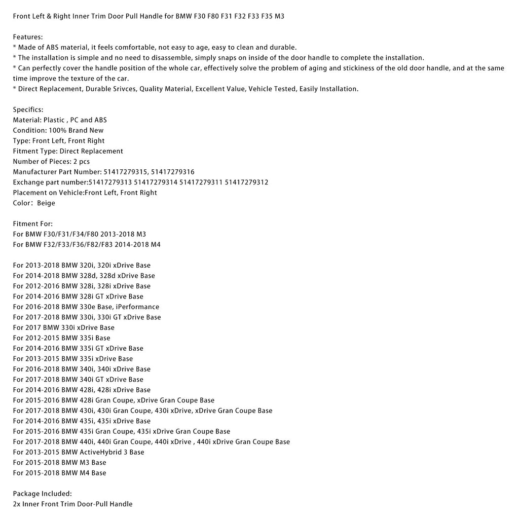 Türgriff innen vorne links & rechts für BMW F30 F80 F31 F32 F33 F35 M3