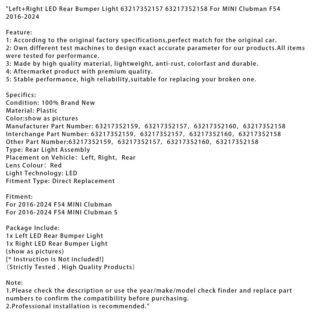 Links + Rechts LED Hinten Bumper Licht 63217352157 63217352158 Für MINI Clubman F54 2016-2024