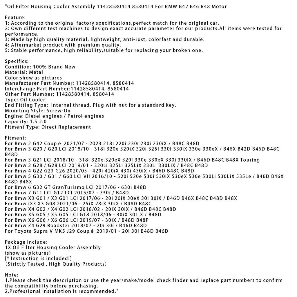 Ölfiltergehäuse Kühlerbaugruppe 11428580414 8580414 Für BMW B42 B46 B48 Motor