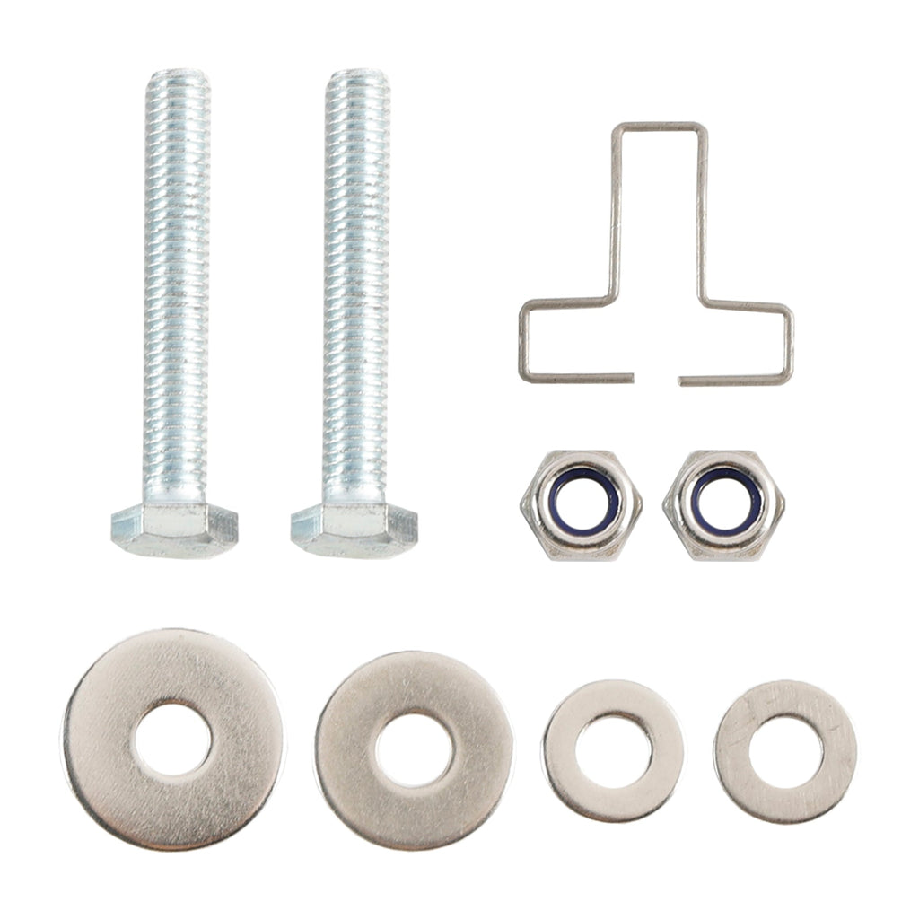 Montagesatz bestehend aus Nyloc-Muttern, Penny-Unterlegscheiben, Standard-Unterlegscheiben, Schrauben und Kabelhaltestift.