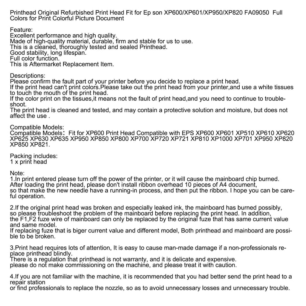 Kompatible Modelle: Passend für XP600 Druckkopf Kompatibel mit EPS XP600 XP601 XP510 XP610 XP620 XP625 XP630 XP635 XP950 XP850 XP800 XP700 XP720 XP721 XP810 XP1000 XP701 XP950 XP820 XP850 XP821.