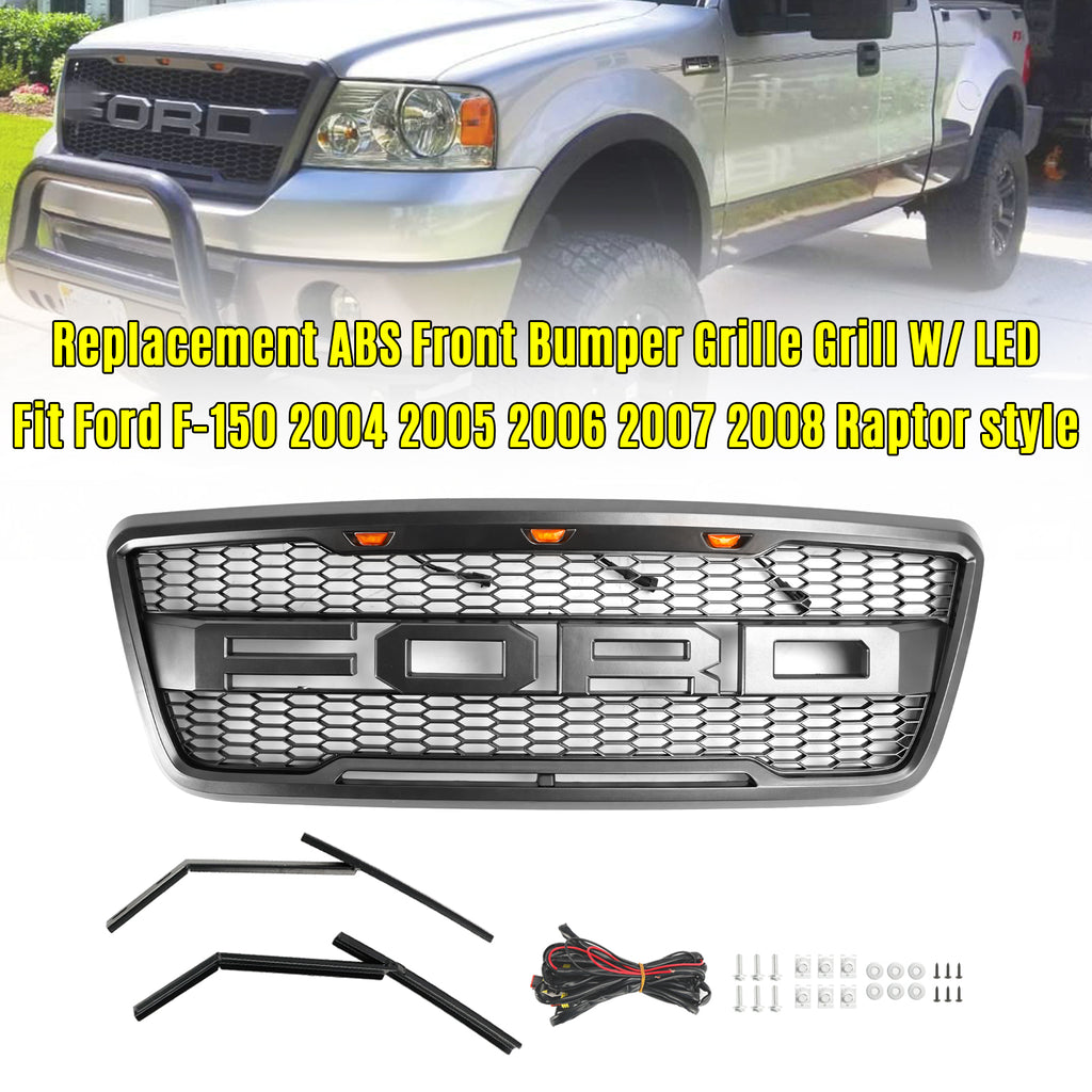 Raptor Stil Front Mesh Hauben Grill Passend für Ford F150 2004-2008 mit LED