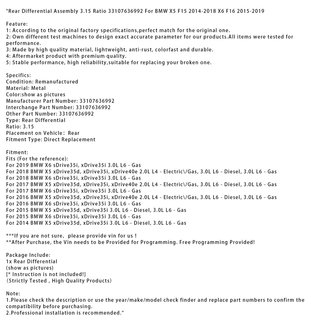 Hintere Differentialbaugruppe 3,15 Verhältnis 33107636992 Für BMW X5 F15 2014-2018 X6 F16 2015-2019