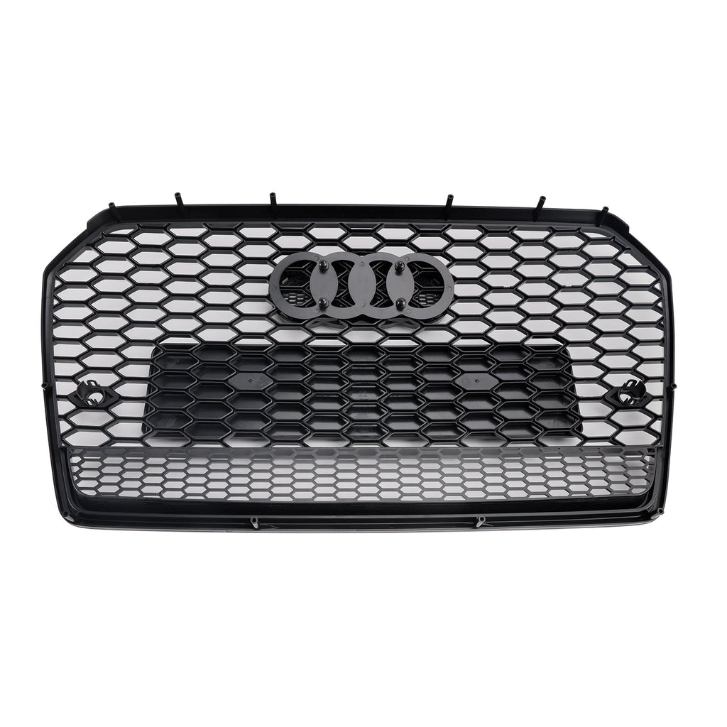RS6 Style Honeycomb Mesh Kühlergrill für Audi A6 S6 C7 2016–2018, Schwarz