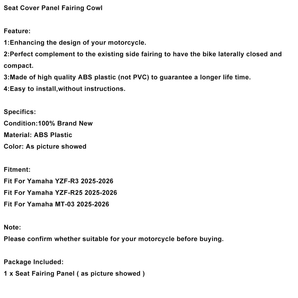 Sitzbankabdeckung/Verkleidung passend für Yamaha YZF-R3 R25 MT-03 2025-2026