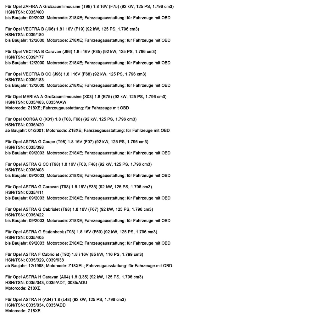 Für Opel ASTRA G CC (T98) 1.8 16V (F08, F48) (92 kW, 125 PS, 1.796 cm3)