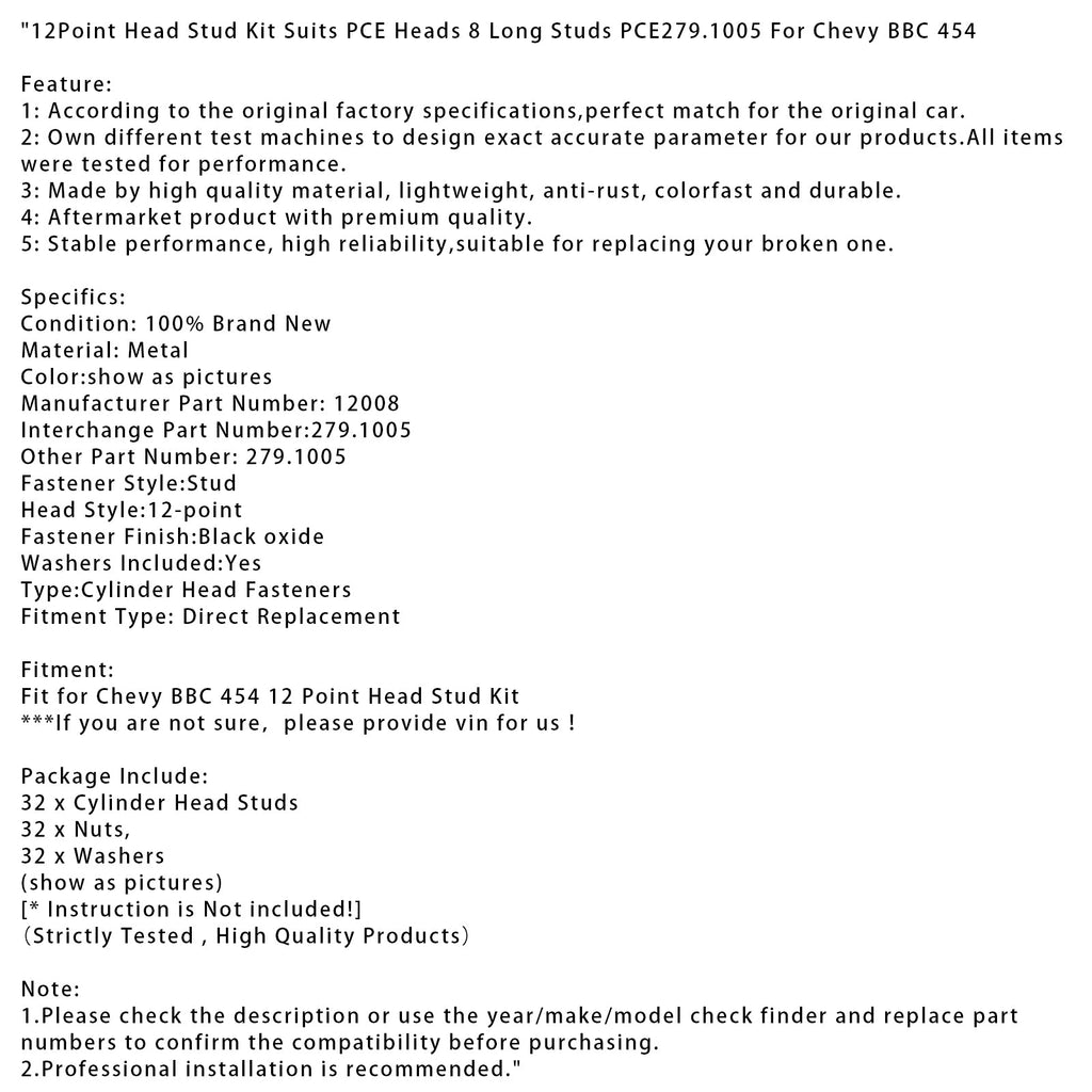 12-Punkt-Zylinderkopfbolzen-Set passend für PCE-Zylinderköpfe, 8 lange Bolzen PCE279.1005 für Chevy BBC 454