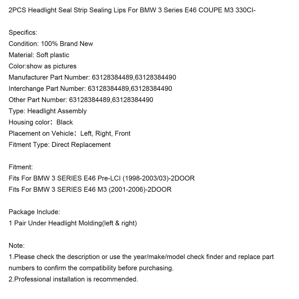 2 peças de fita de vedação para faróis e lábios de vedação para BMW Série 3 E46 COUPE M3 330CI-