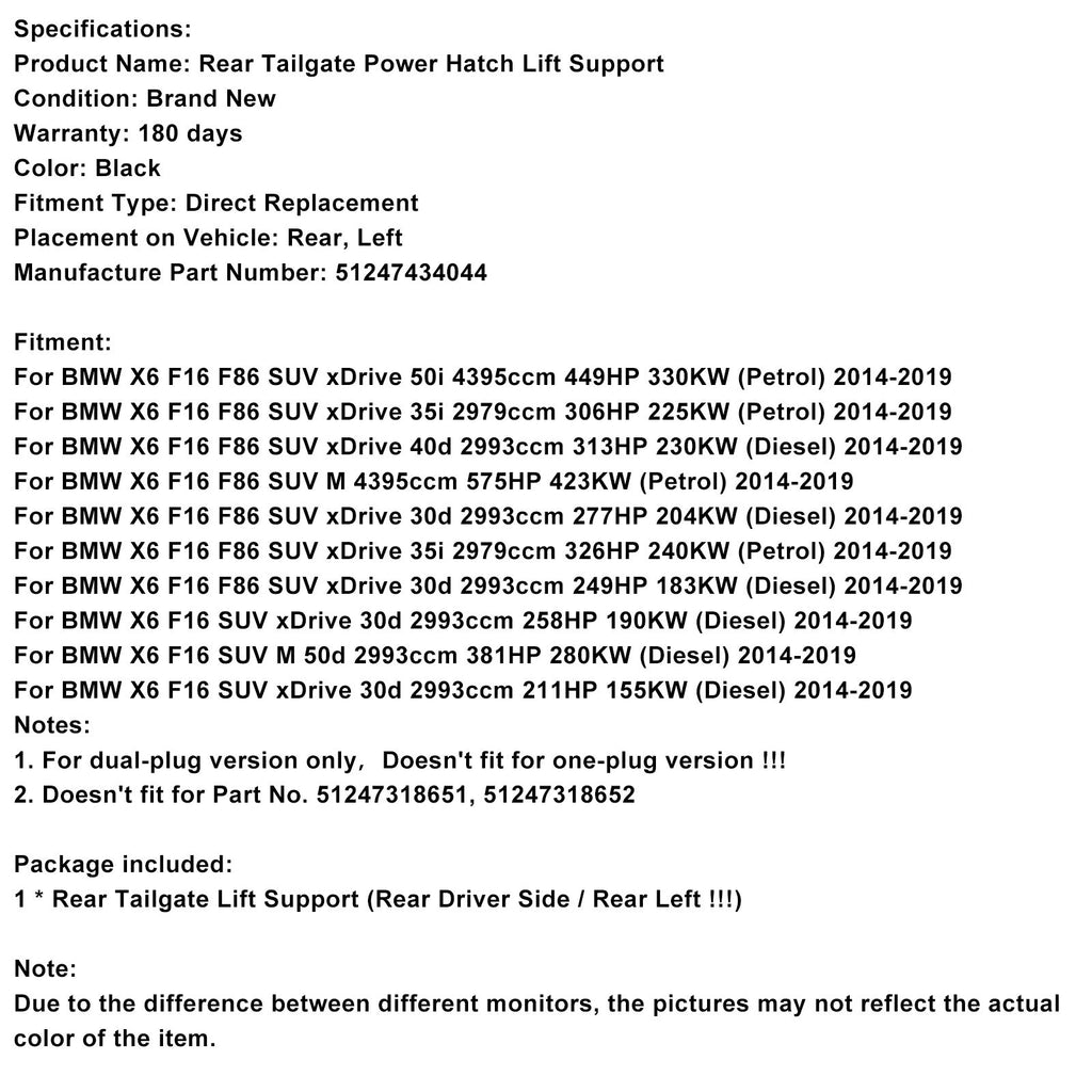 Para BMW X6 F16 F86 SUV xDrive 30d 2993ccm 277PS 204KW (Diesel) 2014-2019