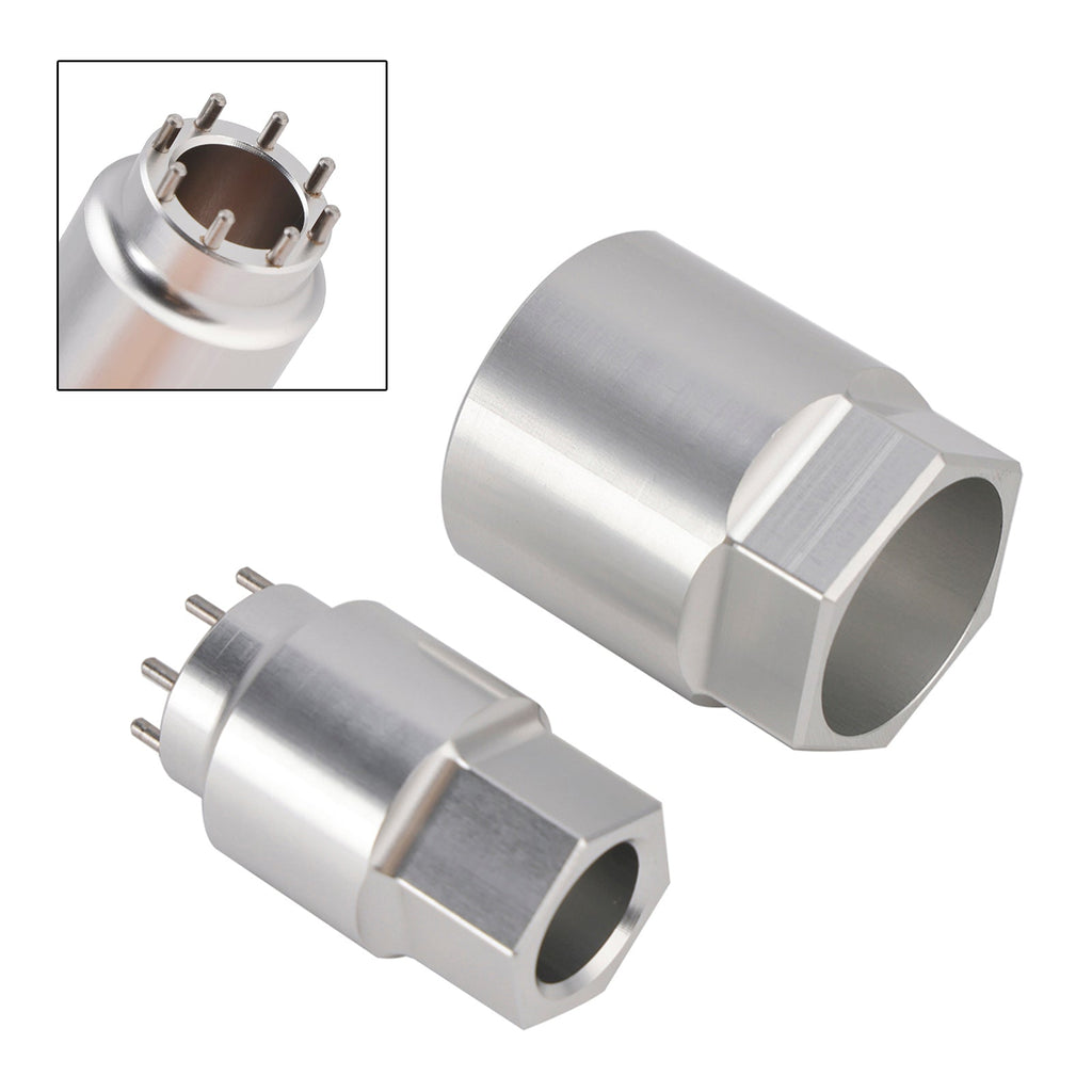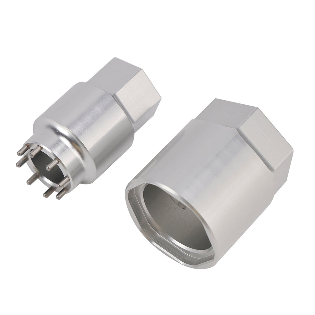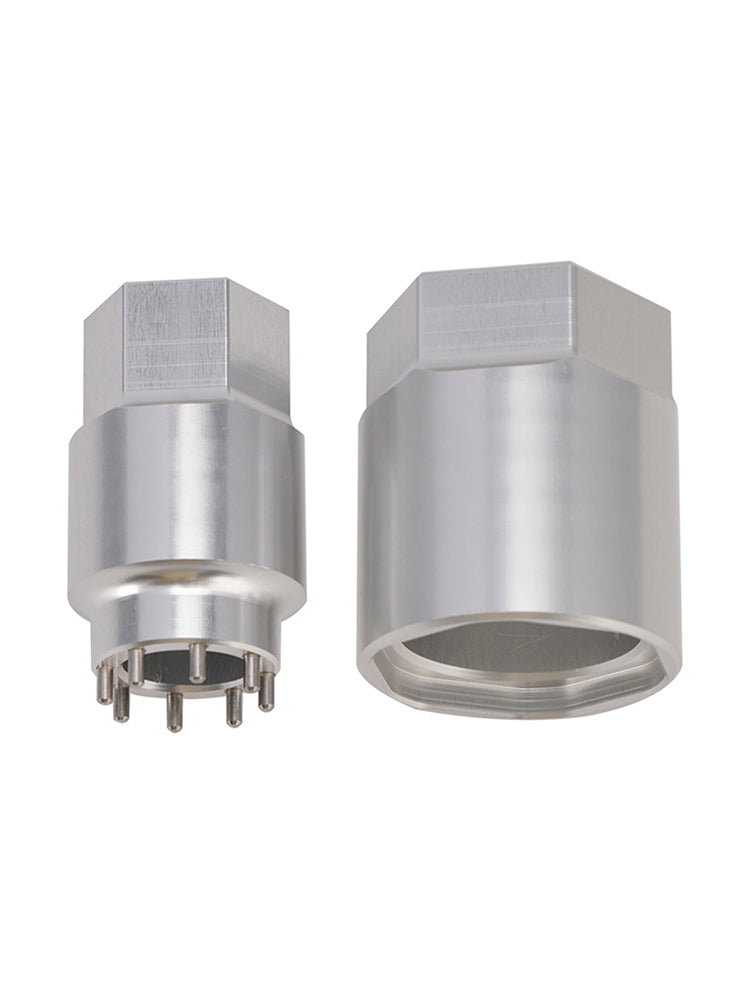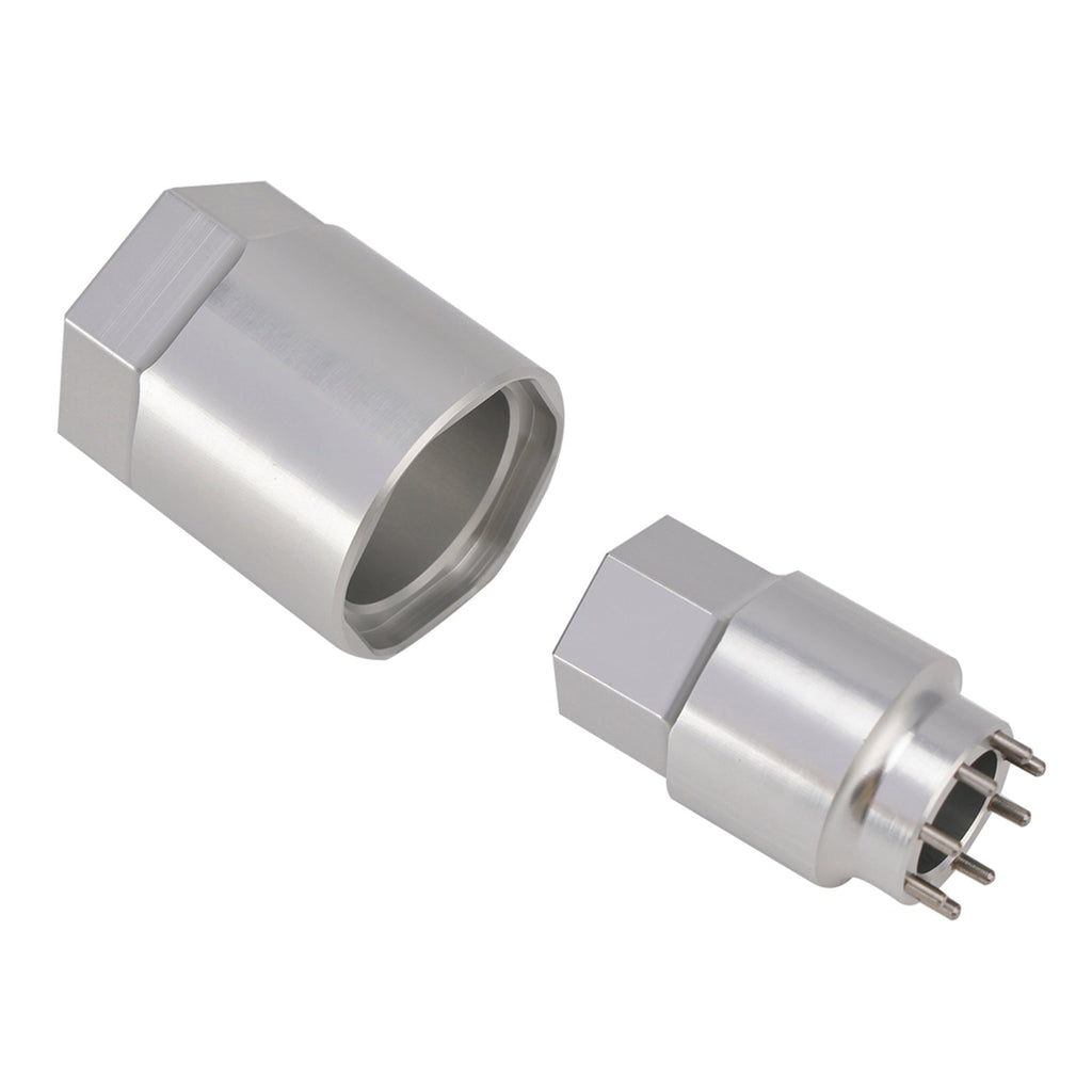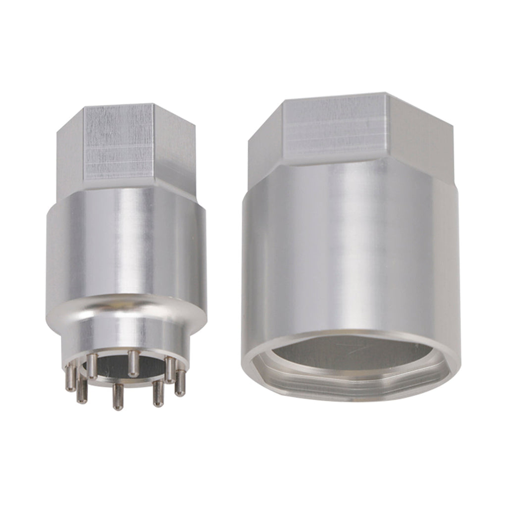 Die erste ist für eine 8-polige Buchse. Sie verfügt über gehärtete Stifte und ist für eine präzise Passform CNC-gefräst. Sie wird für den inneren Teil des Dichtkopfes verwendet.