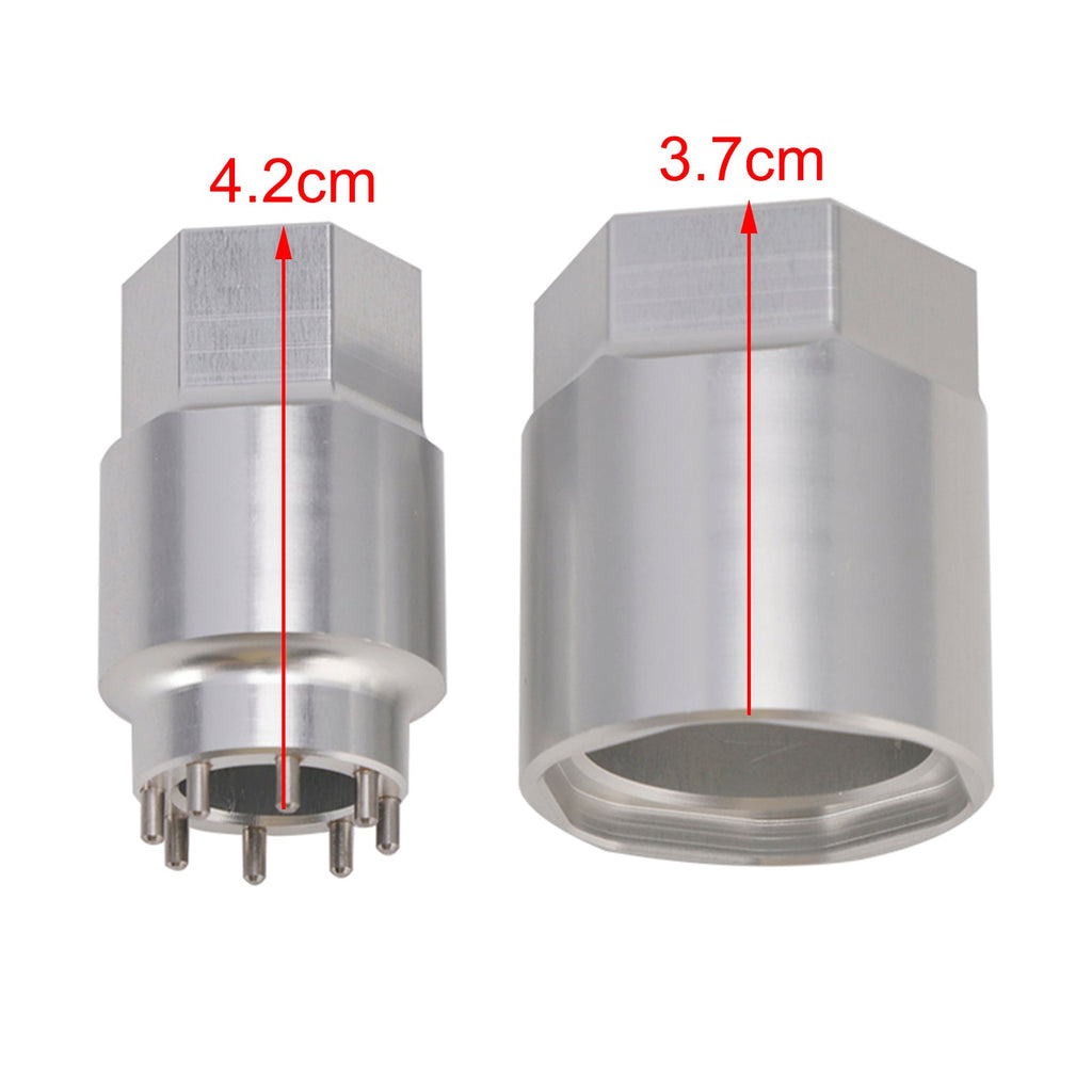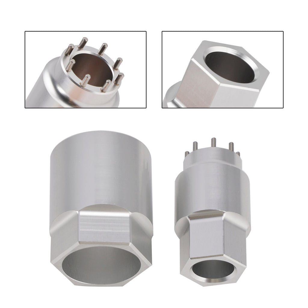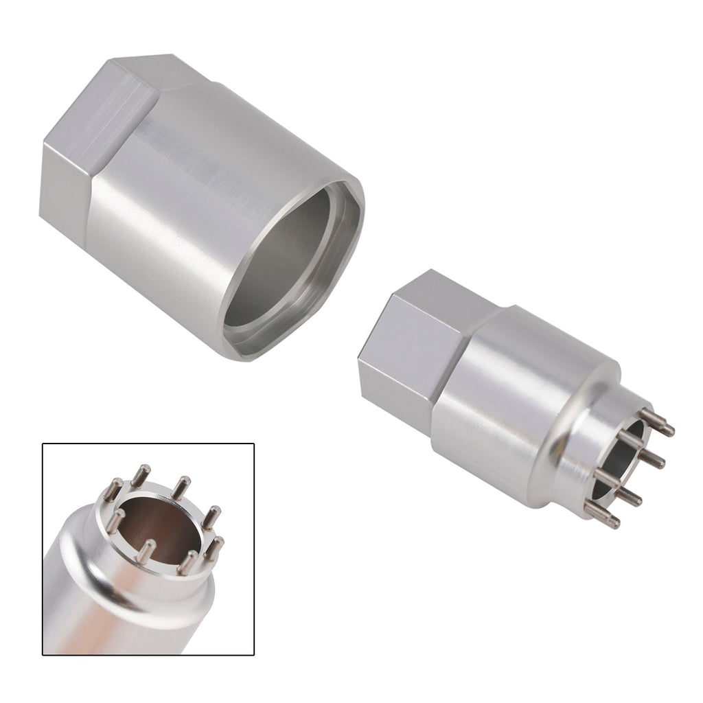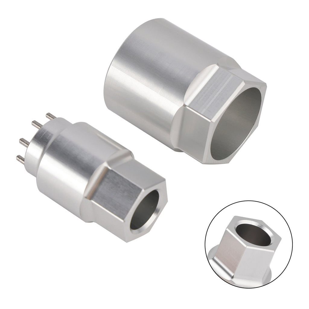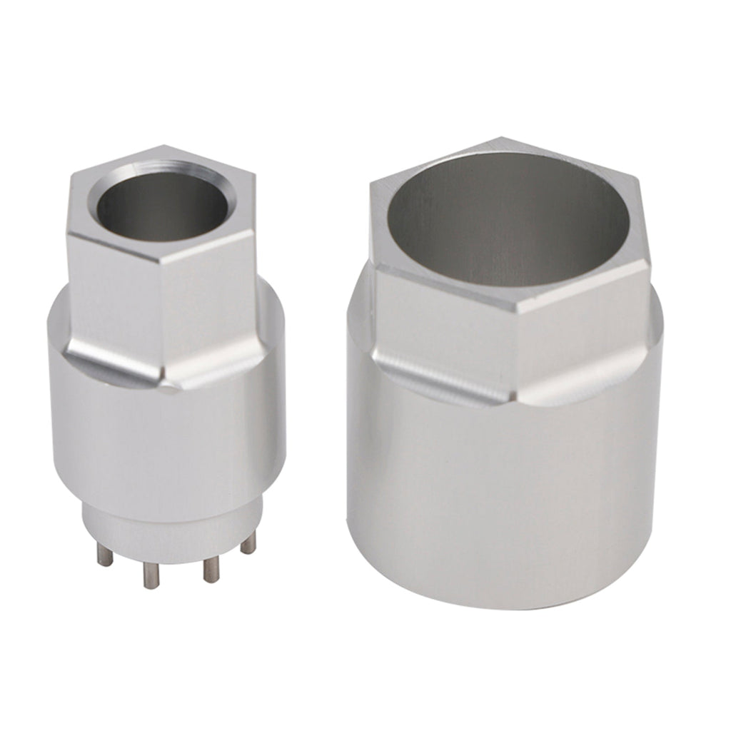 Die erste ist für eine 8-polige Buchse. Sie verfügt über gehärtete Stifte und ist für eine präzise Passform CNC-gefräst. Sie wird für den inneren Teil des Dichtkopfes verwendet.
