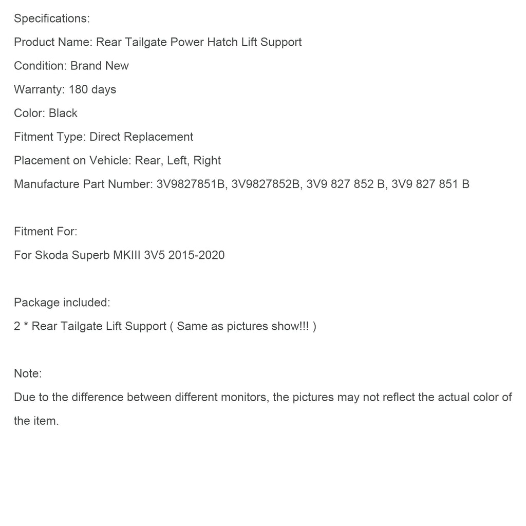 Conjunto de 2 molas a gás para porta traseira elétrica, código 3V9827851B, compatíveis com Skoda Superb III 3V5 e 3V9827852B.