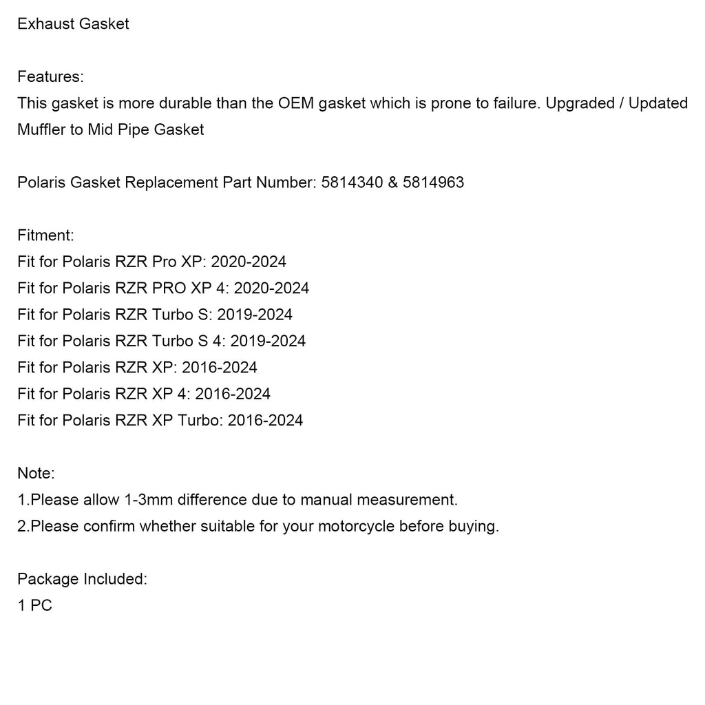Junta de escapamento aprimorada adequada para Polaris RZR Turbo XP PRO 2016-2023 5814340 5814963