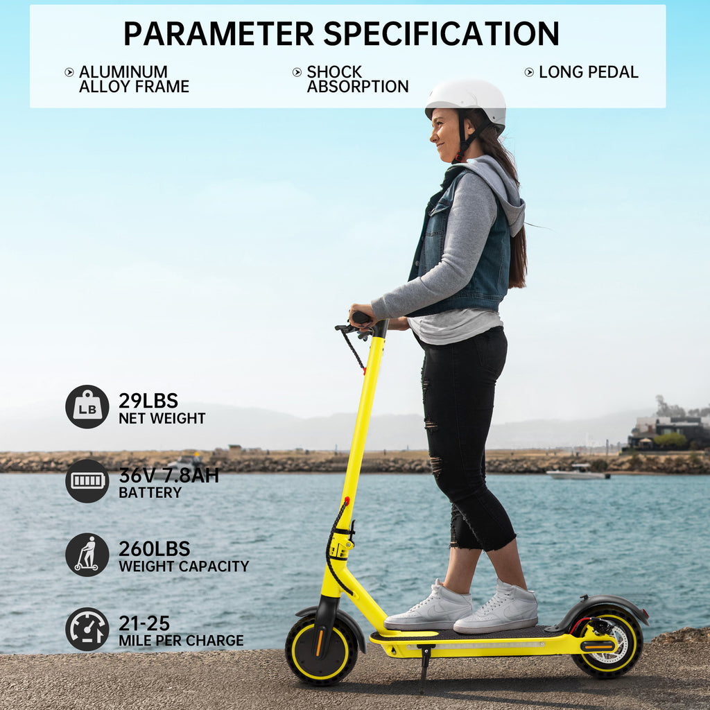A scooter elétrica tem proteção contra capotamento. Todas as e-scooters têm certificados MSDS/FCC etc., então você não precisa se preocupar em carregar a bateria. Com um motor de cubo sem escovas de 350 W, ele pode atender à maioria das suas necessidades de viagem e é uma maneira ecológica de explorar sua cidade. Não se esqueça de sincronizar seu dispositivo Bluetooth.