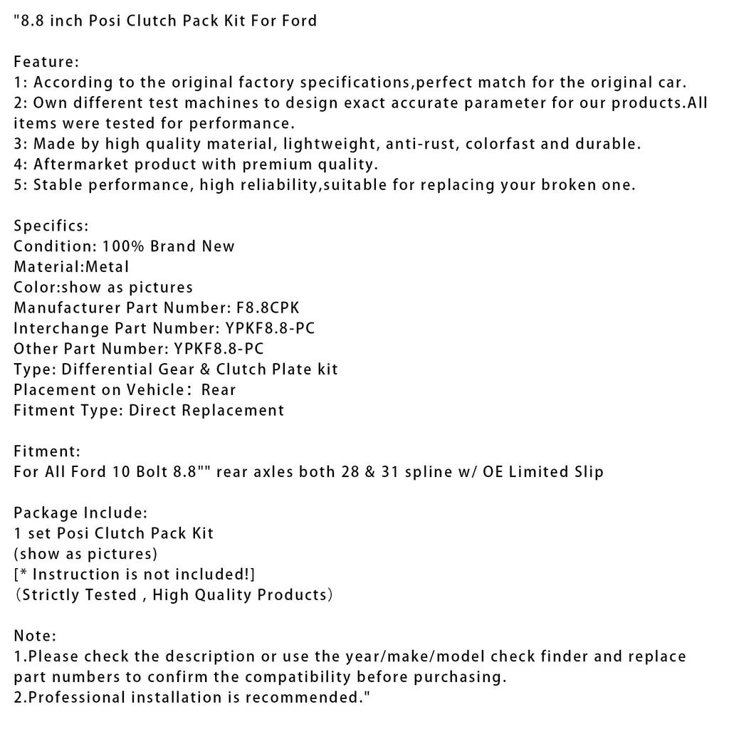 8,8 Zoll Posi-Kupplungspaket-Kit F8.8CPK für Ford