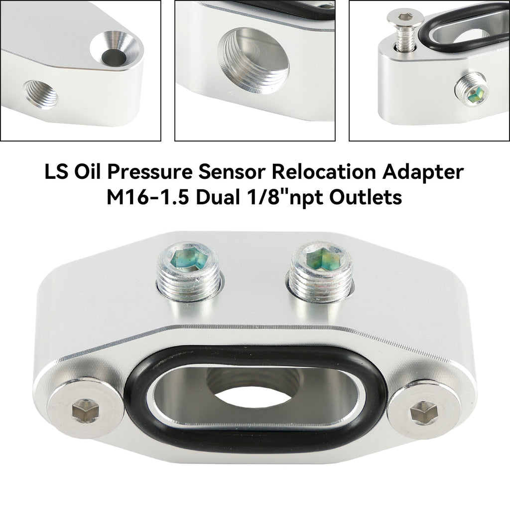 * Esta placa é usada para vedar a porta de óleo no cárter acima do filtro de óleo e também fornece duas (2) portas NPT de 1/8-2" retas para cima ou para baixo para sensores ou linha de alimentação de óleo turbo