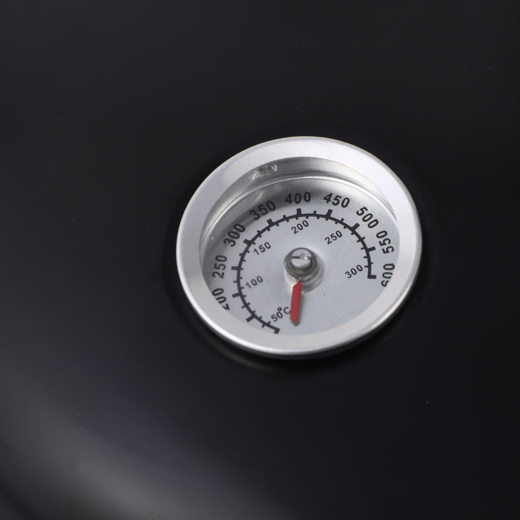 【Thermometer & verstellbare Luftzufuhr】Für eine bessere Temperaturüberwachung ist dieser BBQ-Grill mit einem eingebauten Thermometer mit detaillierter Skala ausgestattet. In Kombination mit der verstellbaren Luftklappe im Deckel lässt sich der Luftstrom regulieren, um eine konstante Temperatur für beste Kochergebnisse zu gewährleisten.
