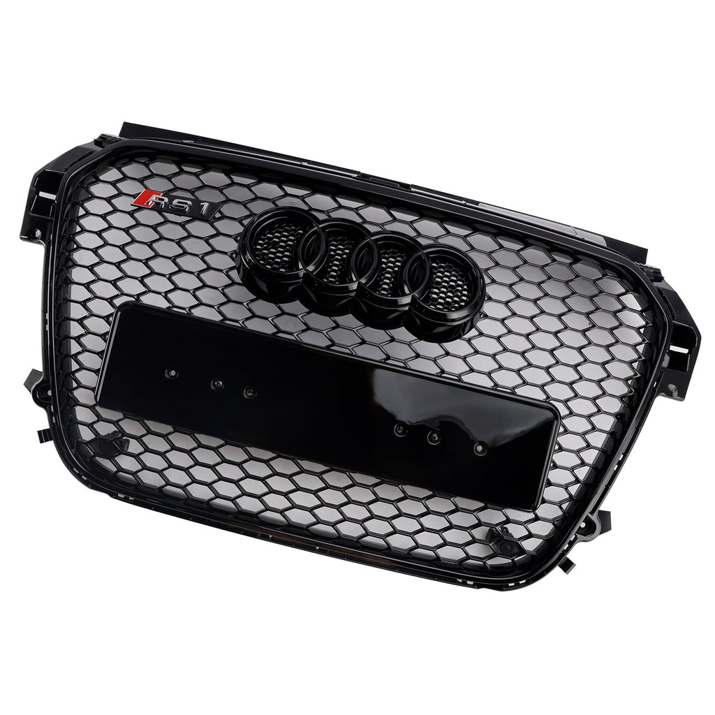 Grade frontal preta brilhante com estrutura em favo de mel para o para-choque, adequada para Audi A1 S1 2010–2014.