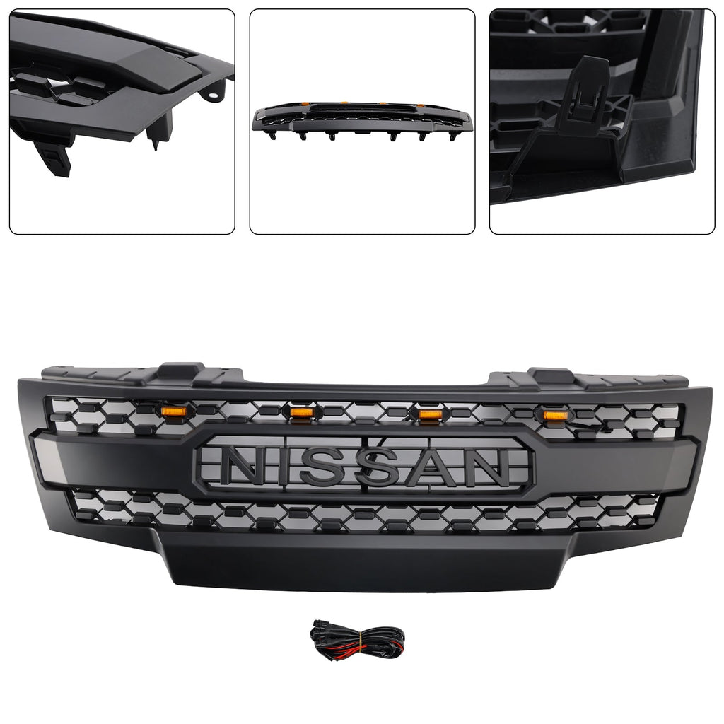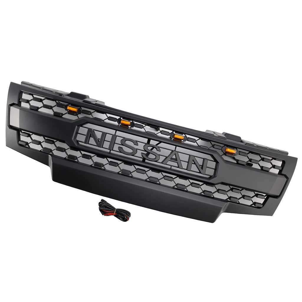 Grade dianteira preta para Nissan Frontier 2009-2019 com luzes LED