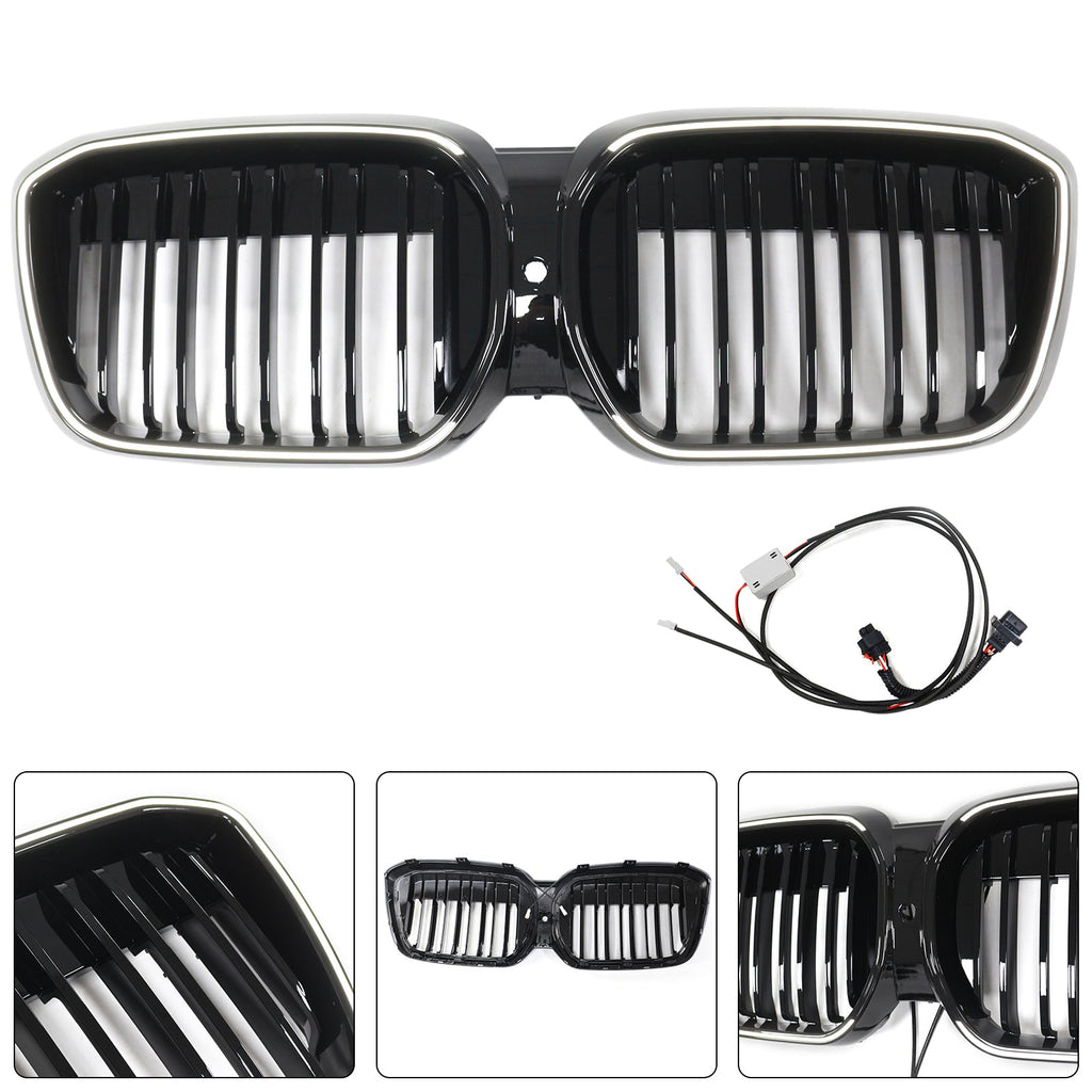 Grade de ripas duplas em preto brilhante para BMW IX3 G08 LCI 2022-2024