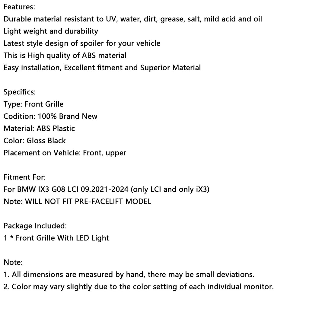 Para BMW IX3 G08 LCI 09.2021-2024 (somente LCI e iX3)