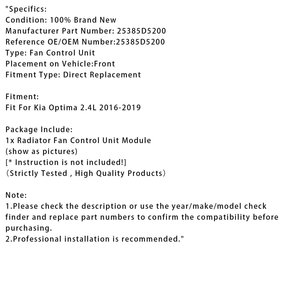 Kühlerlüfter-Steuermodul für Kia Optima 2.4L 2016-2019 25385D5200