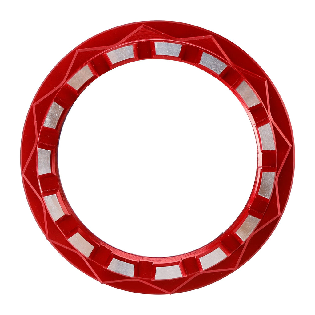 Hinterradflanschmutter aus Leichtmetallblock CNC-gefräst und anschließend mit einer farbig eloxierten Oberfläche versehen.