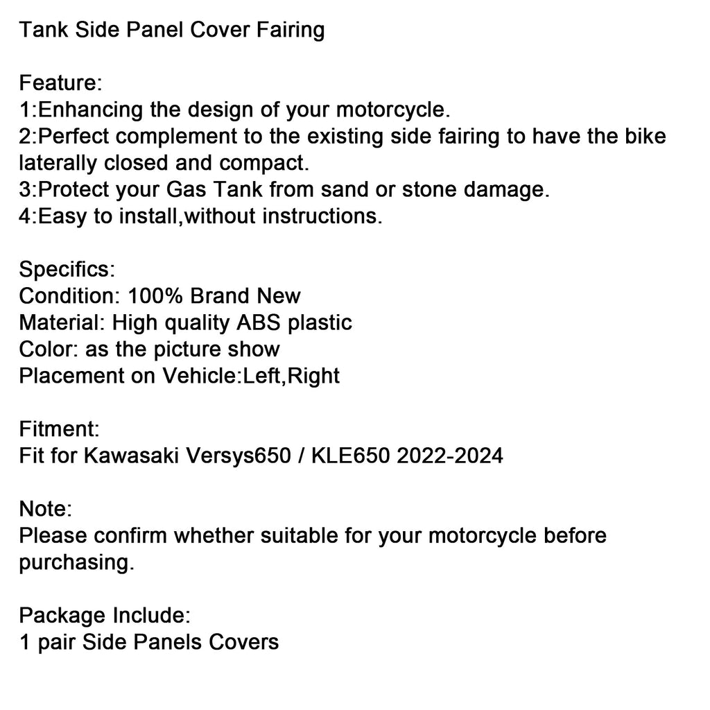 Capa de carenagem da tampa lateral do tanque adequada para Kawasaki Versys 650 KLE650 2022-2024