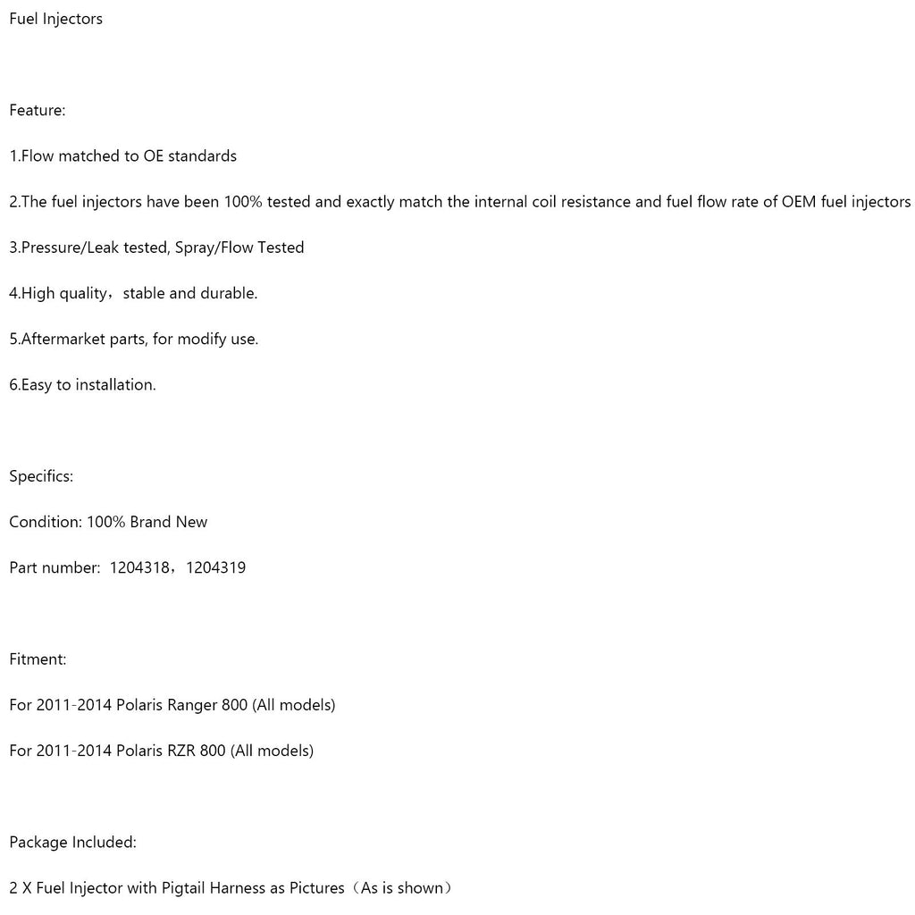 Injektorledningsnät (PAIR) Lämplig för Polaris RZR Ranger 800 11-14 1204318 1204319